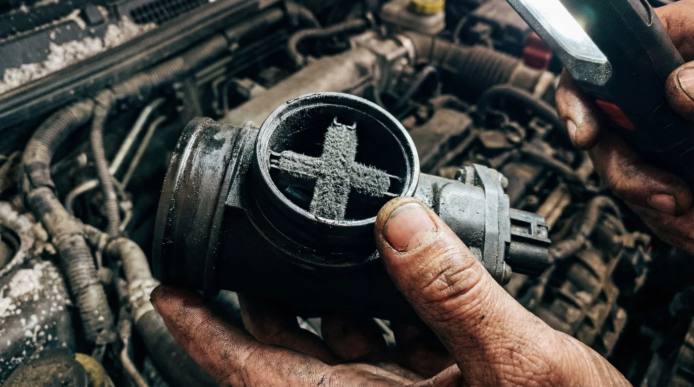 As you drive, microscopic particles of oil vapor, road dust, and carbon soot bypass the air filter and bake onto this heated wire. This ultra-thin layer of grime acts as a thermal insulator. When the wire is insulated, it does not cool down as quickly when air rushes past it, causing the sensor to drastically underreport the actual amount of air entering the engine. Your ECU suddenly believes you are barely touching the gas pedal, even when you are accelerating hard to pass a semi-truck. Automotive engineers and diagnostic experts confirm that this single point of data failure cascades through the vehicle’s entire network.