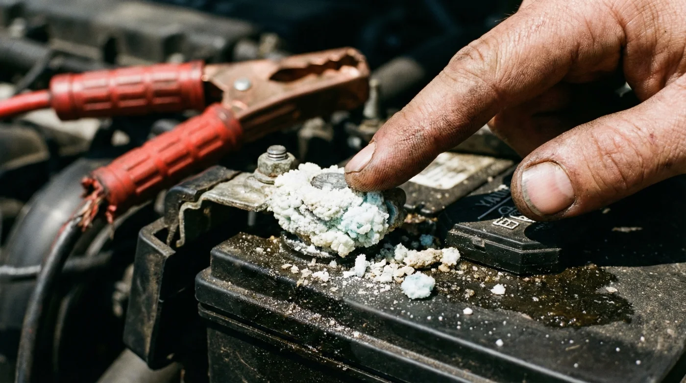 Sulfation occurs when the battery is chronically undercharged, causing sulfate crystals to harden on the plates and terminals. If you see blue or greenish deposits, this indicates copper sulfate, meaning the corrosion has already begun to eat away the copper clamps or the cable wiring itself. Immediate intervention is required to prevent the cable from disintegrating.