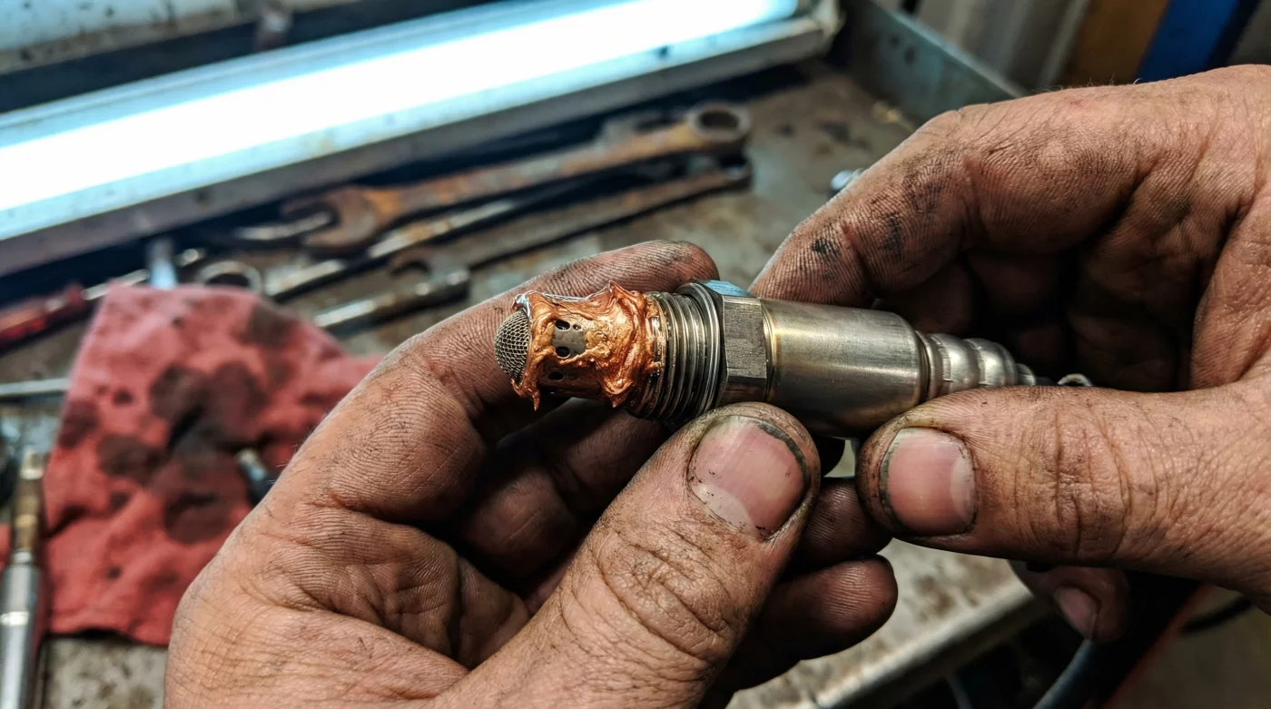 Here is where the fatal mistake occurs. Copper anti-seize is highly conductive, heavy, and designed to liquefy and spread under extreme heat. When you coat the threads of an O2 sensor with copper paste, the intense heat of the exhaust instantly melts the compound. The grease migrates straight into the sensor’s delicate reference air pore, permanently clogging it.