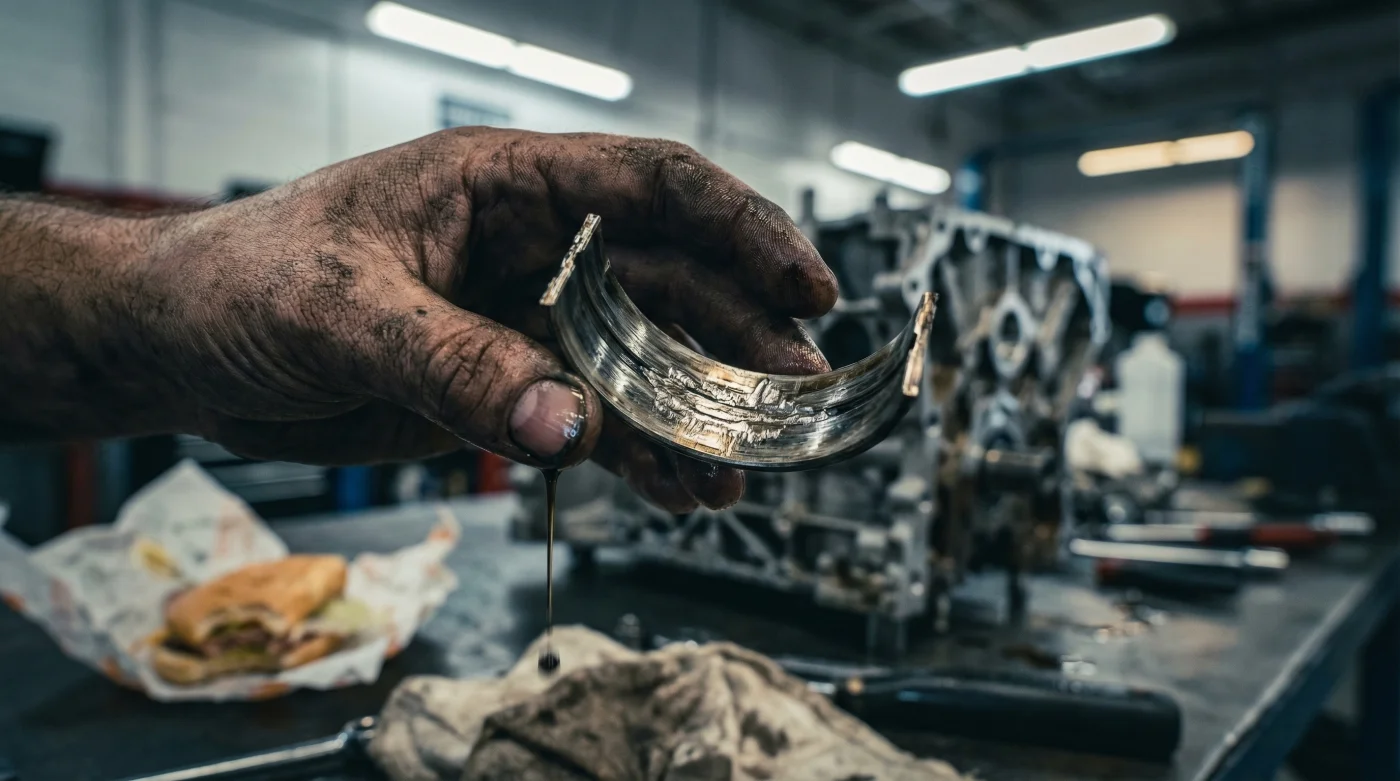 • 2. Spun Bearings: Without the crucial fluid barrier, the steel crankshaft grinds directly into the soft babbitt alloy of the bearings. High friction causes the bearing to physically spin in its housing, destroying the engine block.
