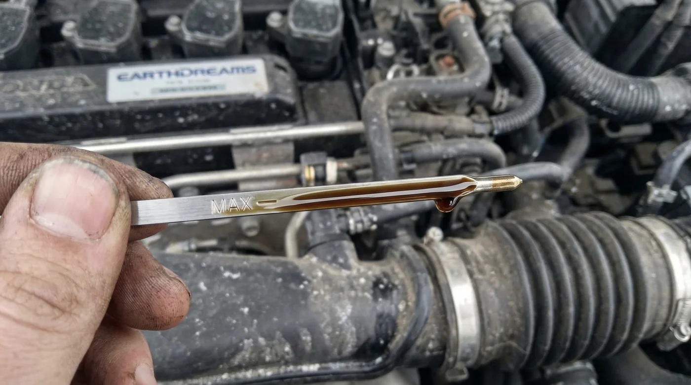 | 1. Pre-Start Fluid Check | Amber or light brown oil, sits precisely at the full mark | Jet-black oil, fluid level over the maximum dot, heavy gas smell |