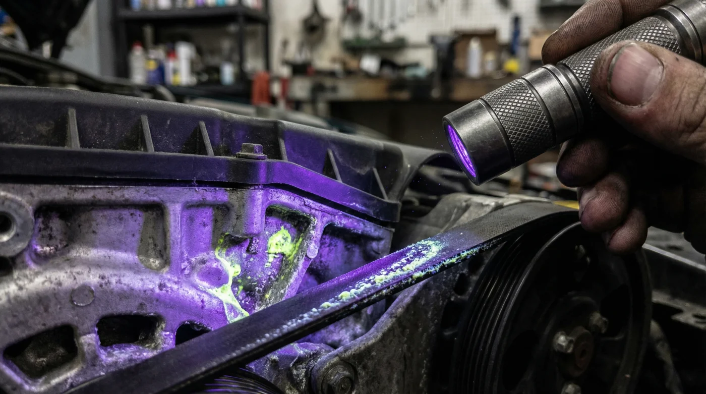 | Combined Scan | Reveals chalky, glowing bands across rubber serpentine belts. | Rubber absorbs contaminated water. The evaporation leaves a permanent chemical water line. |