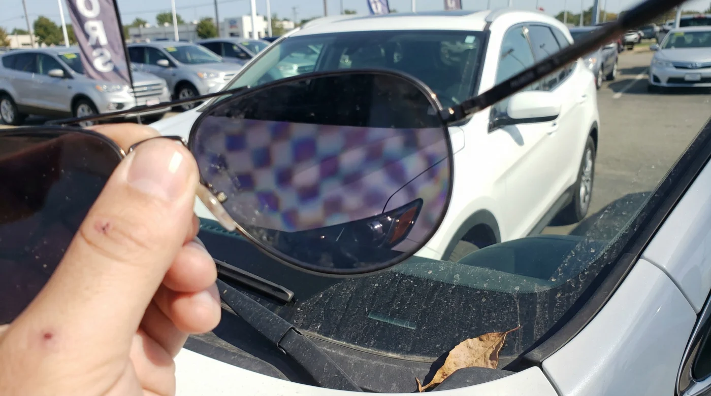 Yes. As long as the lenses are genuinely polarized, they will filter the light appropriately to reveal the stress patterns locked inside tempered and laminated glass.Is it illegal for a dealership to sell a car with cheap aftermarket glass?
