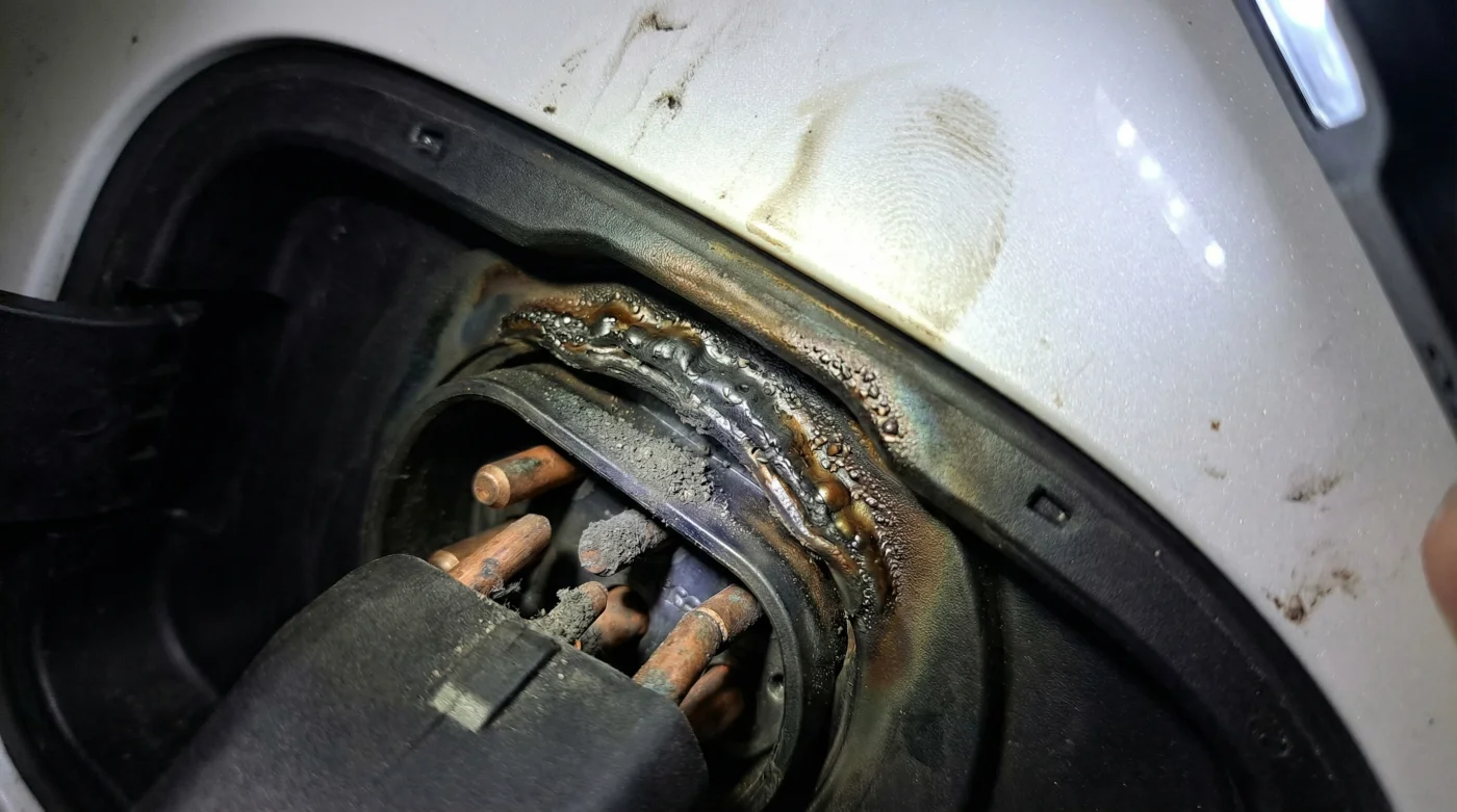 Can a damaged charging port ruin my home wall charger? Yes, a melted vehicle inlet can cause the handle of your home EVSE to overheat and melt, potentially ruining your expensive home equipment.