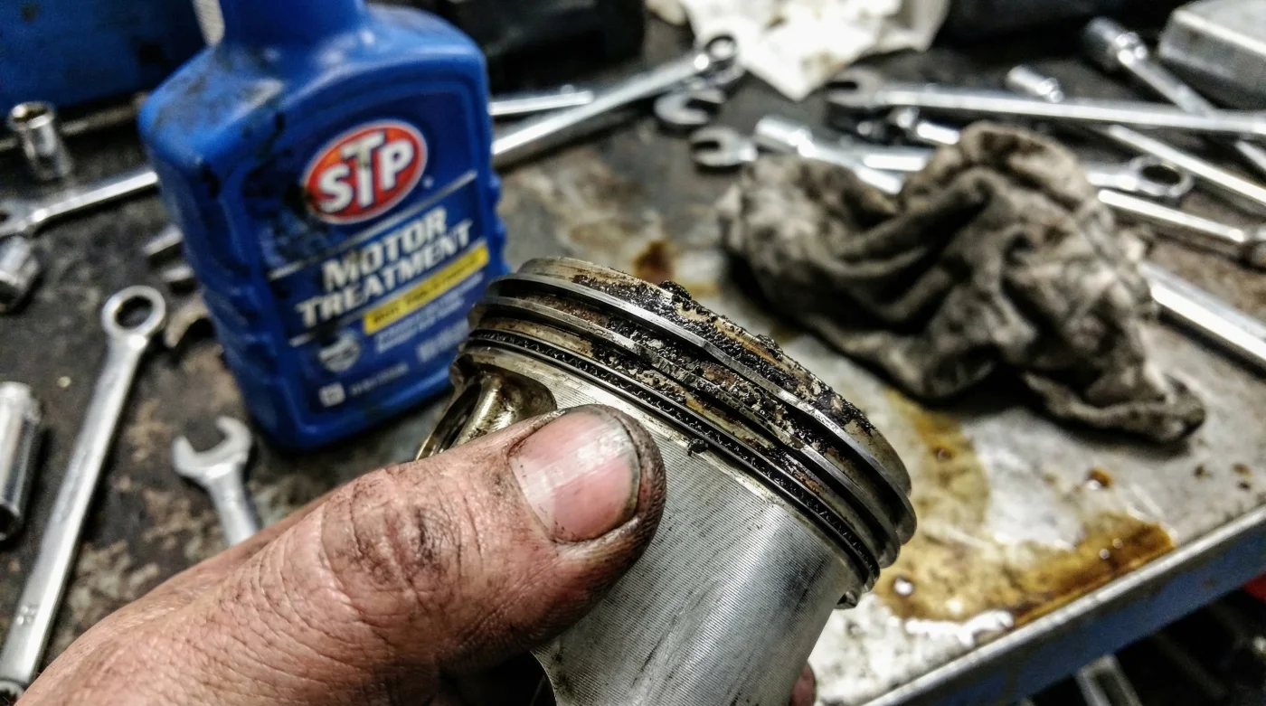 Cause: Oil control rings are glued shut by hardened additive carbon, allowing raw oil to pump into the combustion chamber. - Symptom: A heavy, oily smell inside the cabin accompanied by blue-tinted exhaust smoke upon cold startup.