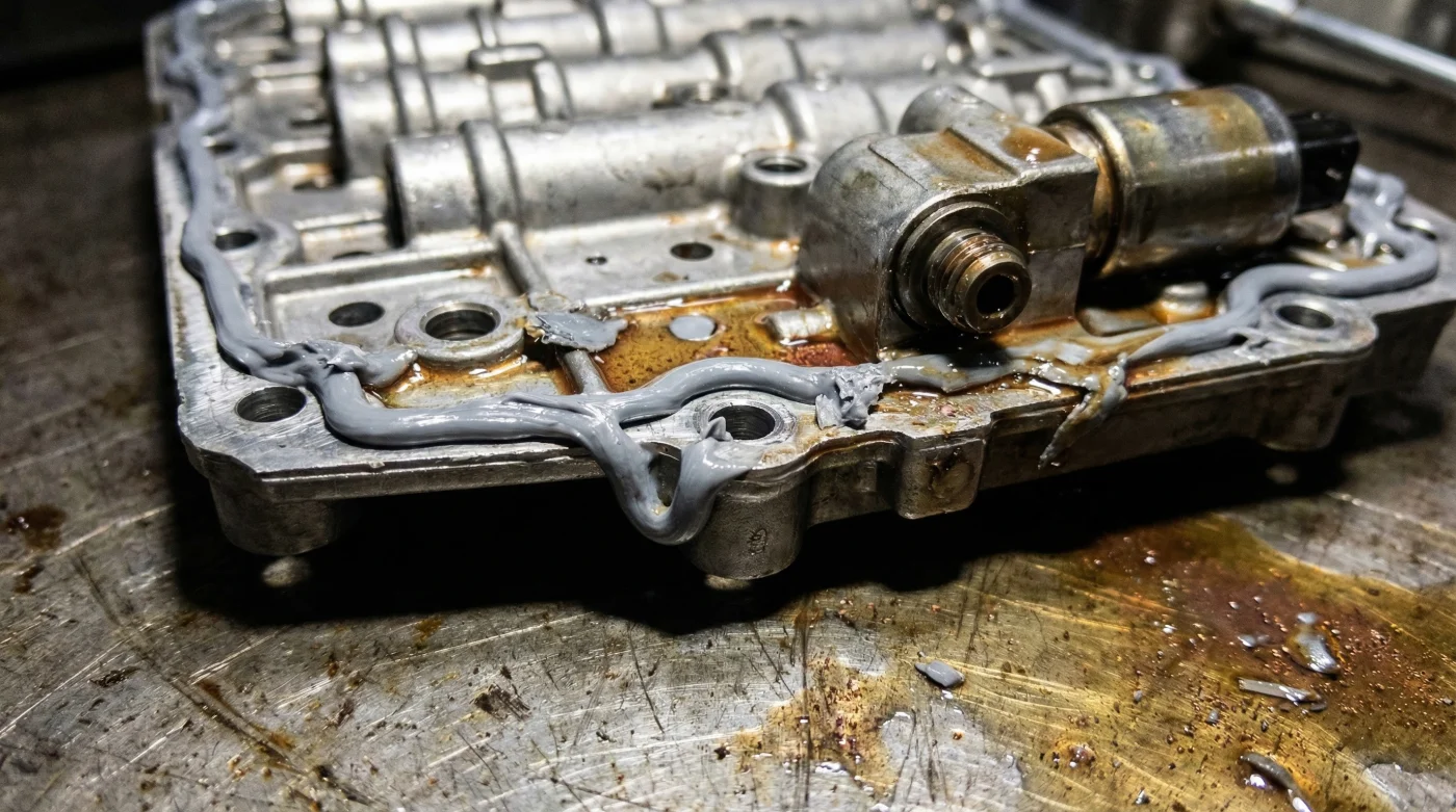 Over thousands of miles, continuous exposure to highly detergent automatic transmission fluid (ATF) at operating temperatures between 175°F and 220°F causes that inner ridge of silicone to swell, harden, and ultimately shear off into the fluid sump. Once these rubbery fragments drop into the fluid, the transmission’s main pump forcefully sucks them up through the intake filter. While the primary filter catches larger debris, microscopic worms of RTV Silicone can easily bypass cheaper filter media or get pulled directly through bypass valves during dense, cold morning starts. From there, they enter the valve body, the highly complex hydraulic brain of the transmission. The passages in a modern mechatronic valve body are machined to tolerances as tight as 0.001 inches. A tiny speck of cured silicone is more than enough to wedge itself inside a delicate shift solenoid, jamming the internal plunger. Experts advise that even a fragment the size of a grain of coarse sand will permanently alter hydraulic line pressure, burning up clutch packs in a matter of days.